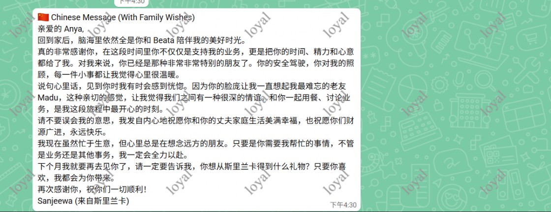 Sanjeewa, thank you. Your four days in Jinan taught me that the most valuable export we offer isn't just machinery—it's the trust and friendship we build along the way. I look forward to your return next month. And please, believe me when I say there is no need for gifts from Sri Lanka; your friendship is the greatest gift of all. Just come.